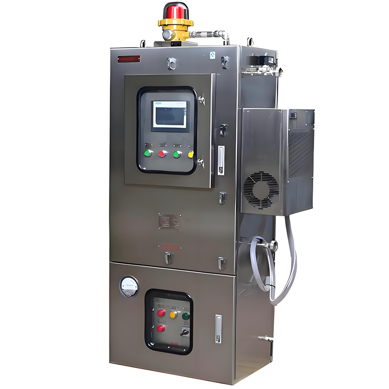 防爆正壓柜通過(guò)控制系統(tǒng)與氣路系統(tǒng)的配合,將來(lái)自安全區(qū)域的保護(hù)氣體引入正壓腔內(nèi)。這種氣體對(duì)正壓腔內(nèi)的可燃性氣體進(jìn)行清洗和置換,使正壓腔內(nèi)保持一定的壓力,從而阻止外部危險(xiǎn)環(huán)境中的可燃性氣體和導(dǎo)電性粉塵進(jìn)入。這種設(shè)計(jì)的主要目的是將可燃性物質(zhì)與點(diǎn)燃源隔離,以達(dá)到防爆的目的。